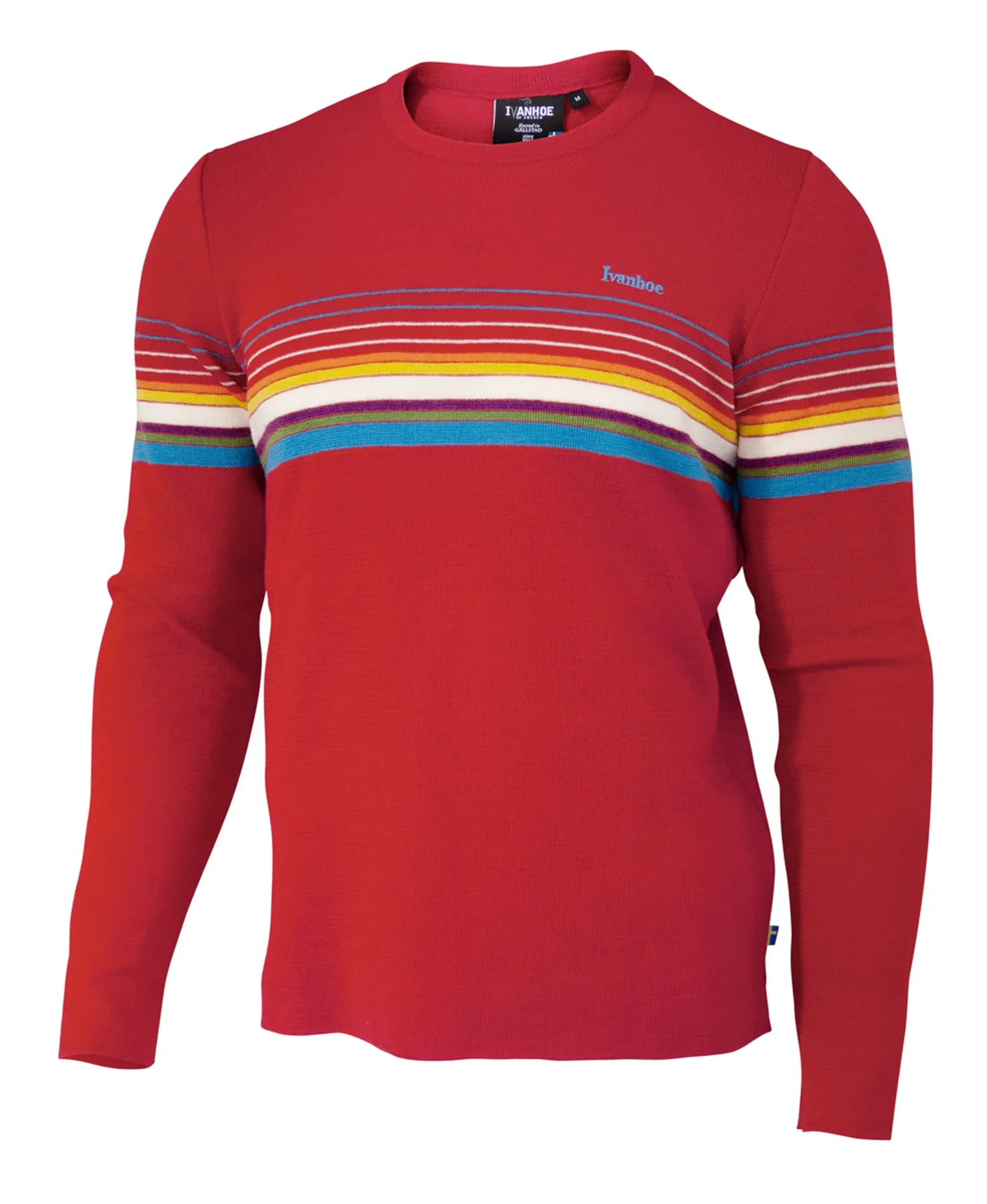 Retro Hang Loose en rundhalsad tröja med flera färger som korsar armar, bröst och rygg. Rakt slut båda på kroppen botten och vid armarna. Tunn och stretchig stickning. Här har i en av vår mest populära Retro tröja från 80-talet. Eftersom det är unisex storlekar så rekommenderar vi dam att gå ned en storlek. Matcha gärna med mössan Retro hang loose hat.