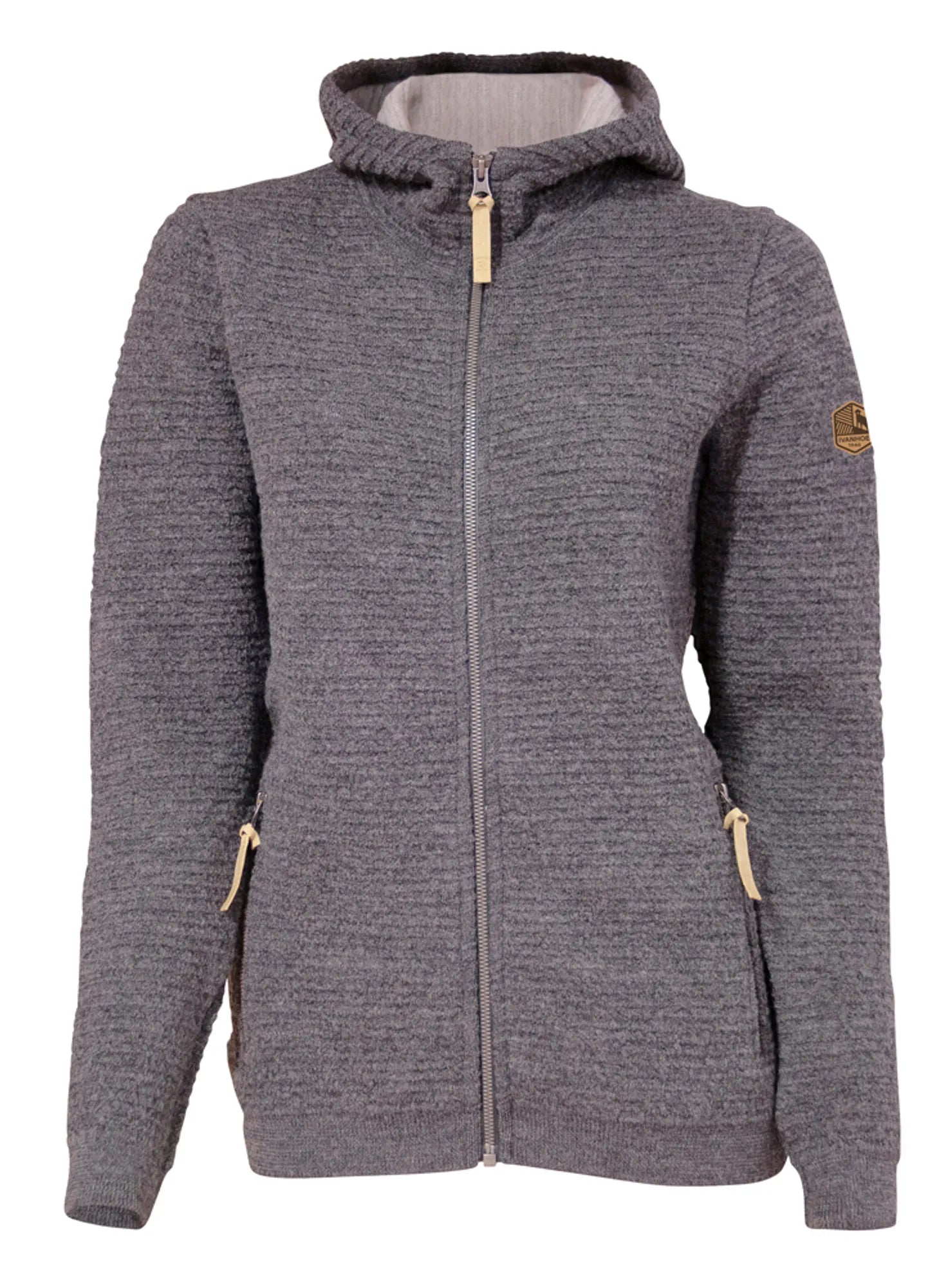 Morel Hood female är en fantastisk ulltröja med luva och hel dragkedja framtill samt dragkedja i sidfickor. Plagget är sticket i en helt nyutvecklad 3D-stickning där stickade luftfickor både ger design och funktion. Materialet är en mix av ull och TENCEL® där ullen ligger som yttersta lager och TENCEL® in mot kroppen. Den avvikande färgen på TENCEL®-garnet ger en schyst designeffekt. Nertill i ärmavslut och body återfinns en ribbstickad mudd. Logomärke i jacron är placerat upptill på vänster ärm.