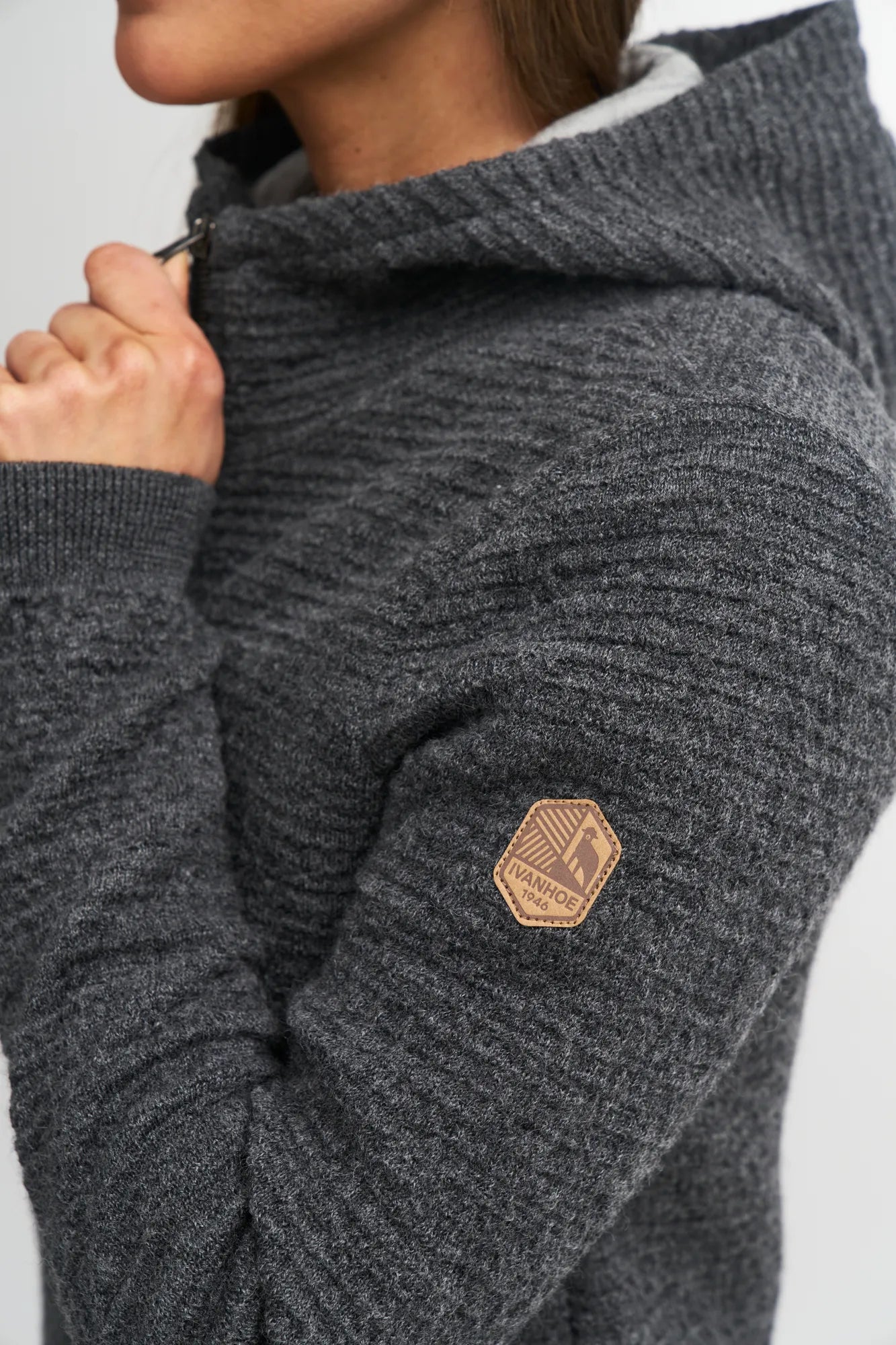 Morel Hood female är en fantastisk ulltröja med luva och hel dragkedja framtill samt dragkedja i sidfickor. Plagget är sticket i en helt nyutvecklad 3D-stickning där stickade luftfickor både ger design och funktion. Materialet är en mix av ull och TENCEL® där ullen ligger som yttersta lager och TENCEL® in mot kroppen. Den avvikande färgen på TENCEL®-garnet ger en schyst designeffekt. Nertill i ärmavslut och body återfinns en ribbstickad mudd. Logomärke i jacron är placerat upptill på vänster ärm.
