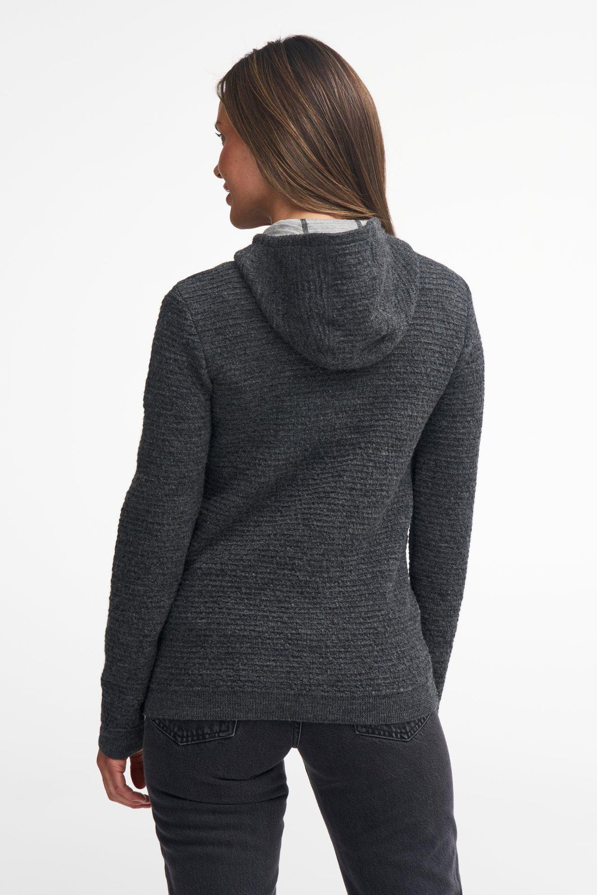 Morel Hood female är en fantastisk ulltröja med luva och hel dragkedja framtill samt dragkedja i sidfickor. Plagget är sticket i en helt nyutvecklad 3D-stickning där stickade luftfickor både ger design och funktion. Materialet är en mix av ull och TENCEL® där ullen ligger som yttersta lager och TENCEL® in mot kroppen. Den avvikande färgen på TENCEL®-garnet ger en schyst designeffekt. Nertill i ärmavslut och body återfinns en ribbstickad mudd. Logomärke i jacron är placerat upptill på vänster ärm.