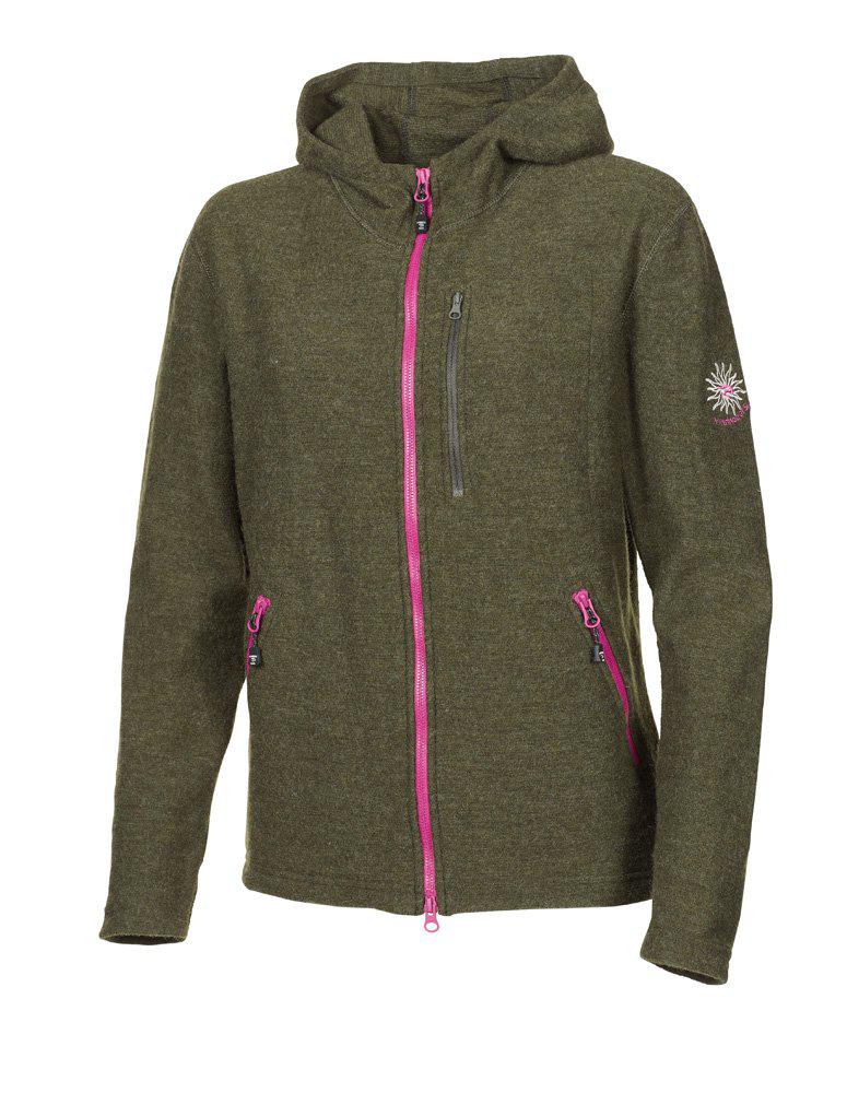 Sportig hoodie i ett oerhört skönt och stretchigt material. Dragkedjan framtill har 2-vägsfunktion och kan alltså öppnas upp nerifrån. Sidfickorna är även de utrustade med dragkedja, plus att plagget har ytterligare en praktisk bröstficka för smått som är viktigt att att ha extra koll på. Dragkedjorna är mjuka och mer följsamma med detta lite tunnare och stretchiga filtade ullmaterial. Brodyr upptill på vänster ärm.