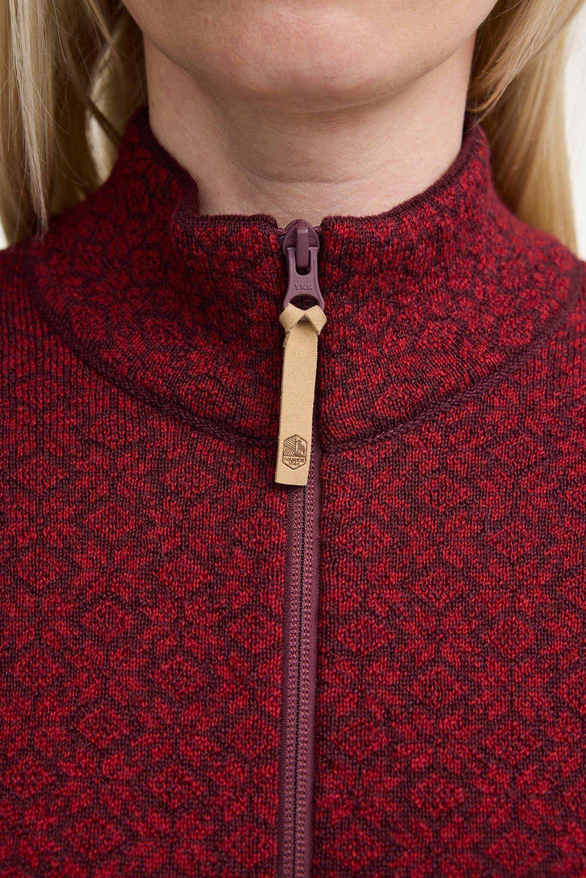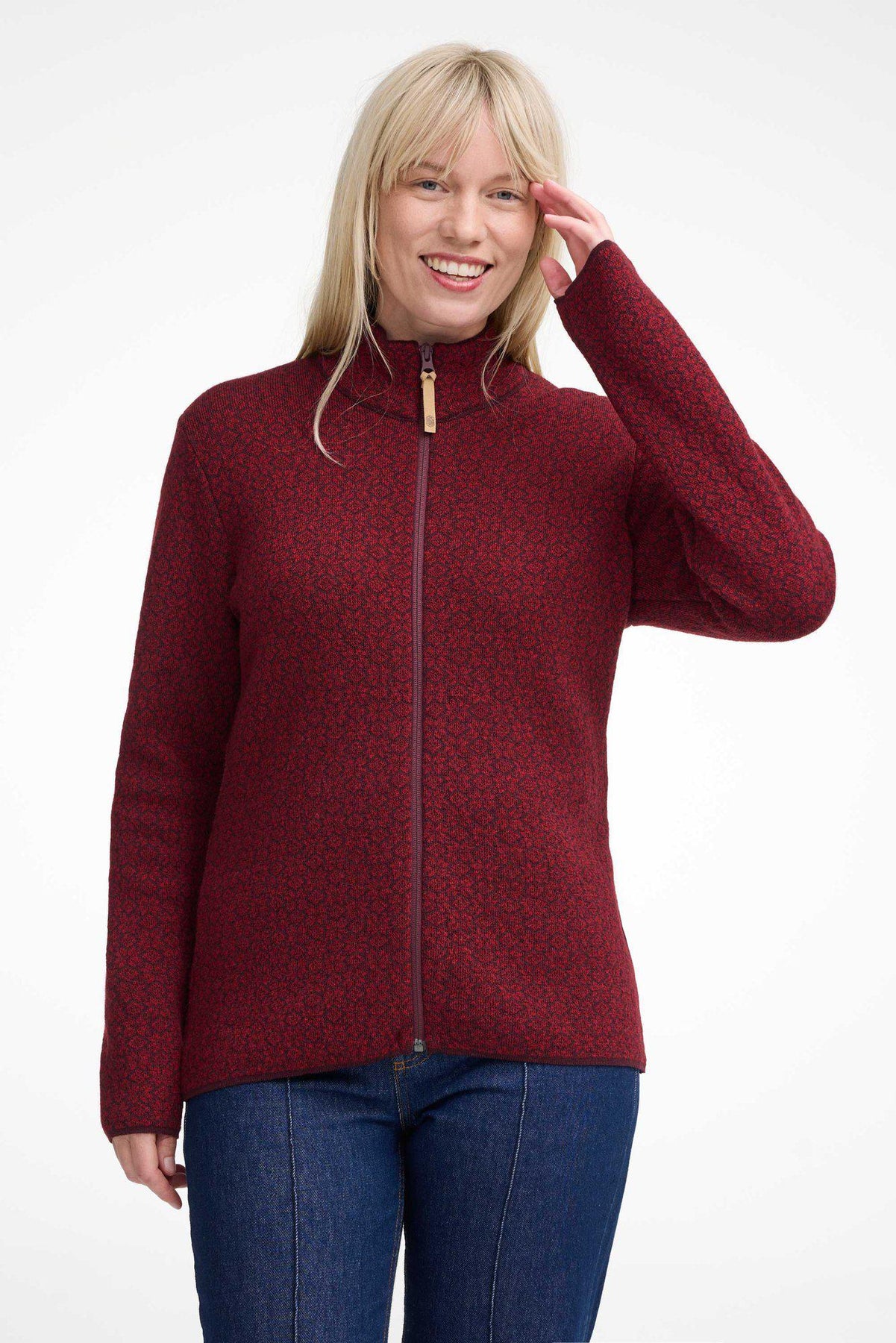 BEATA FULL ZIP, 100% WOLLE — DEEP RED