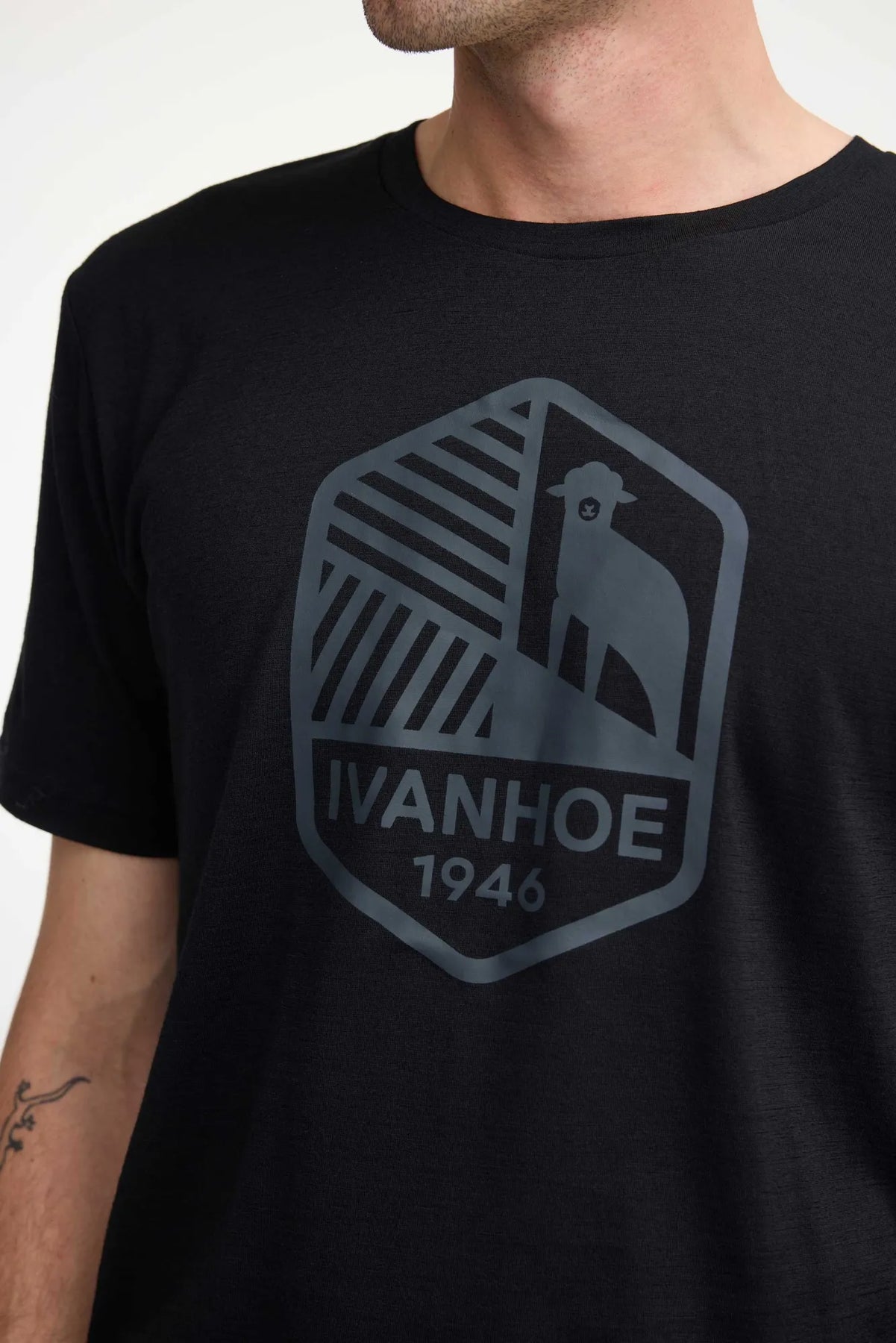 Basic T-Shirt Ceasar mit einem Ton-in-Ton-Logo-Druck. Weich und bequem mit allen großartigen Vorteilen von Wolle.