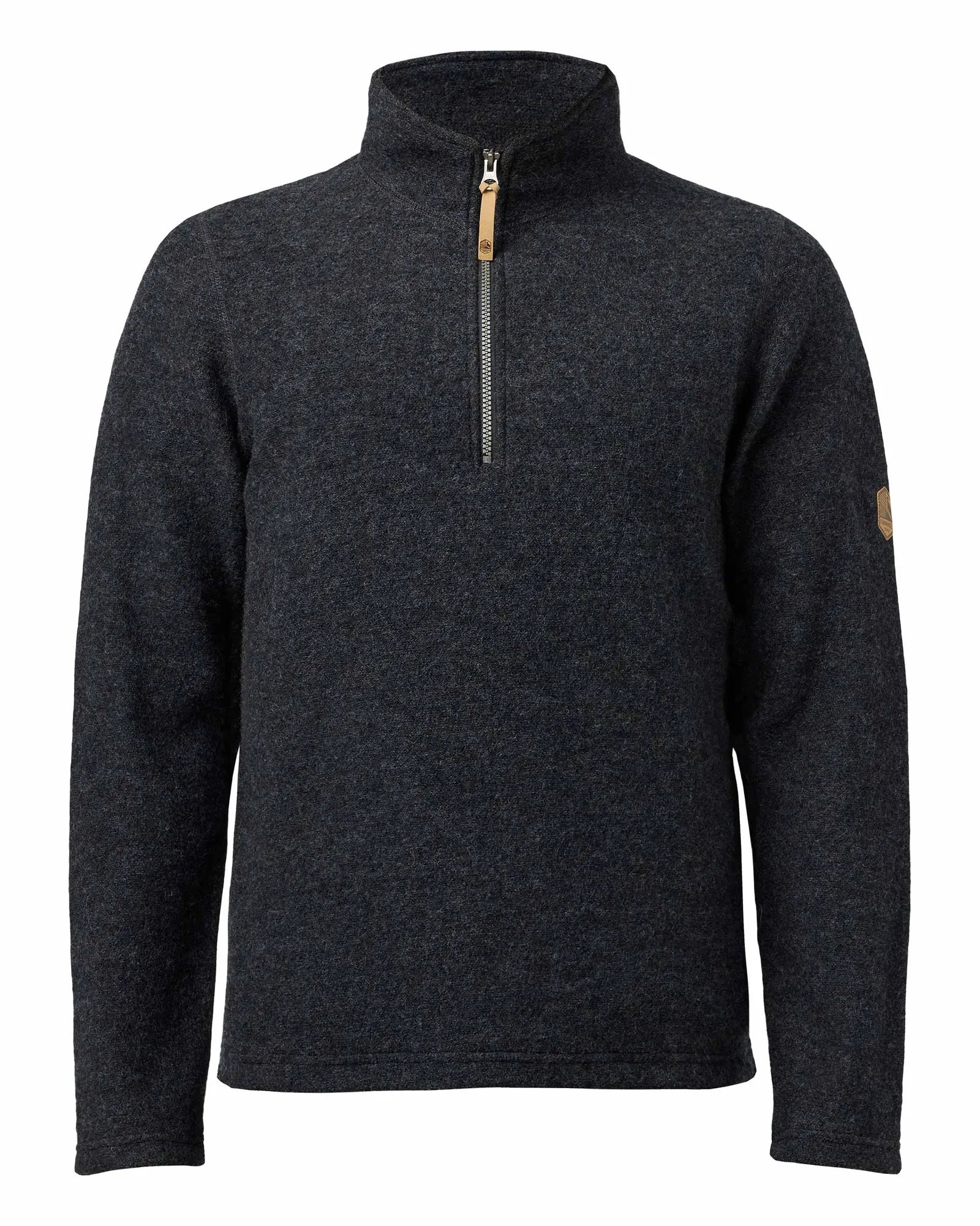 BRODAL HALF ZIP, 100% BOILED WOOL — GRAPHITE MARL