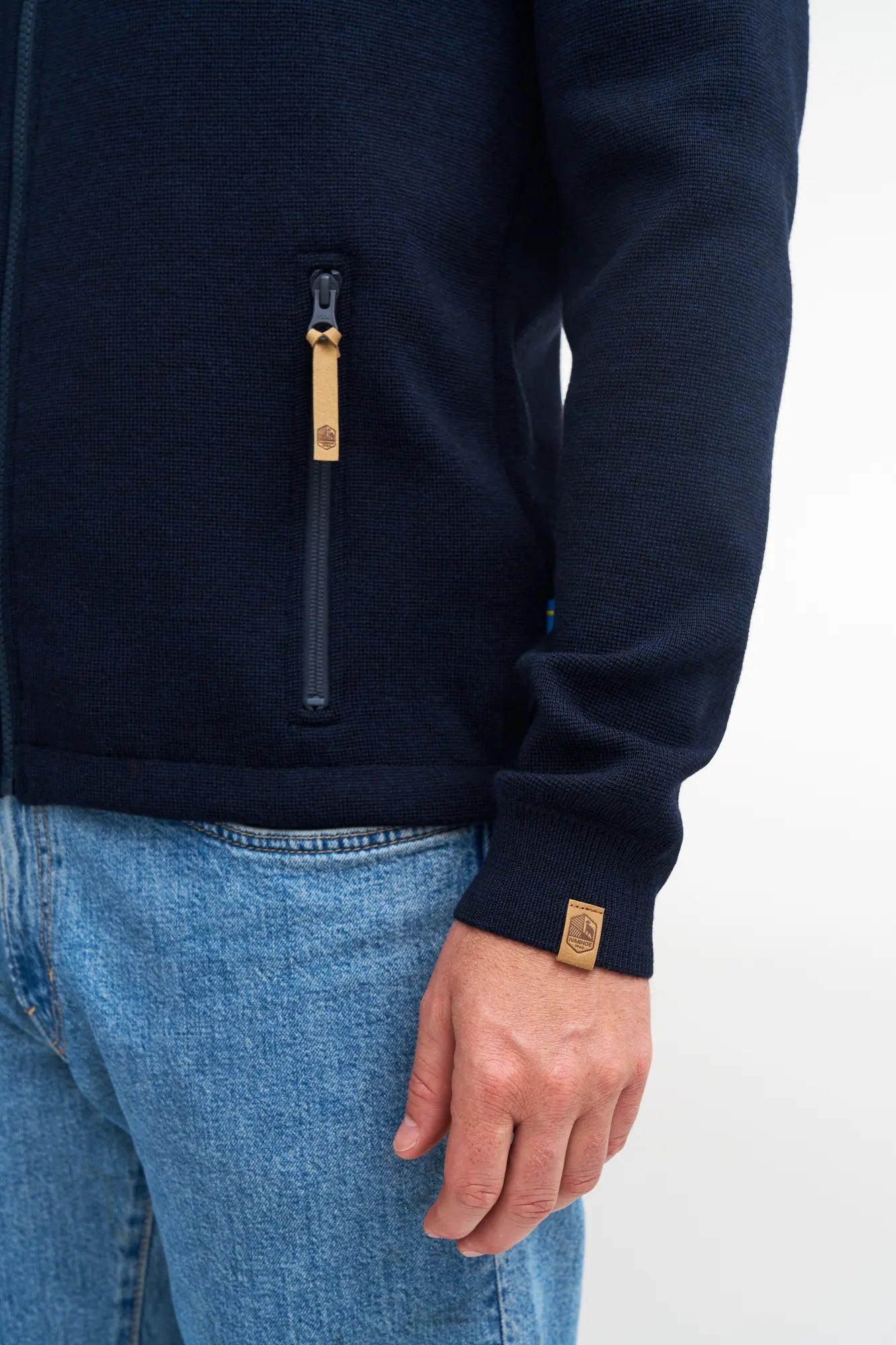 Full zip Merino wool style with a high quality expression. The wool is supersoft and mulesingfree of course! Works perfectly as a inbetween season jacket, a warming layer 2 under your jacket or simply as a wool jacket at the office - it's all up to you. Zip pullers in jacron and small logo badge down at left arm.