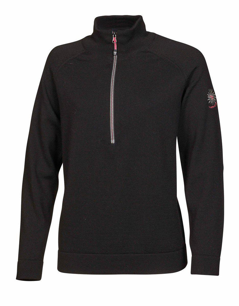 JANA HALF ZIP, 100% MERINO WOOL EXTRAFINE — BLACK