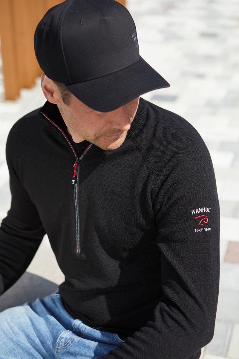 JOJJE HALF ZIP, 100% EXTRA FINE MERINO WOOL — BLACK