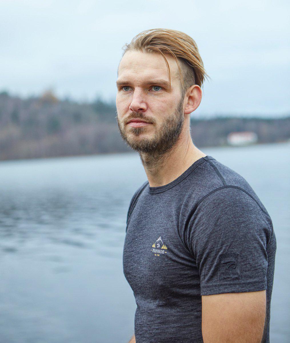 Our classic wool T-shirt with a new tasteful print. This smaller print is placed on left chest.