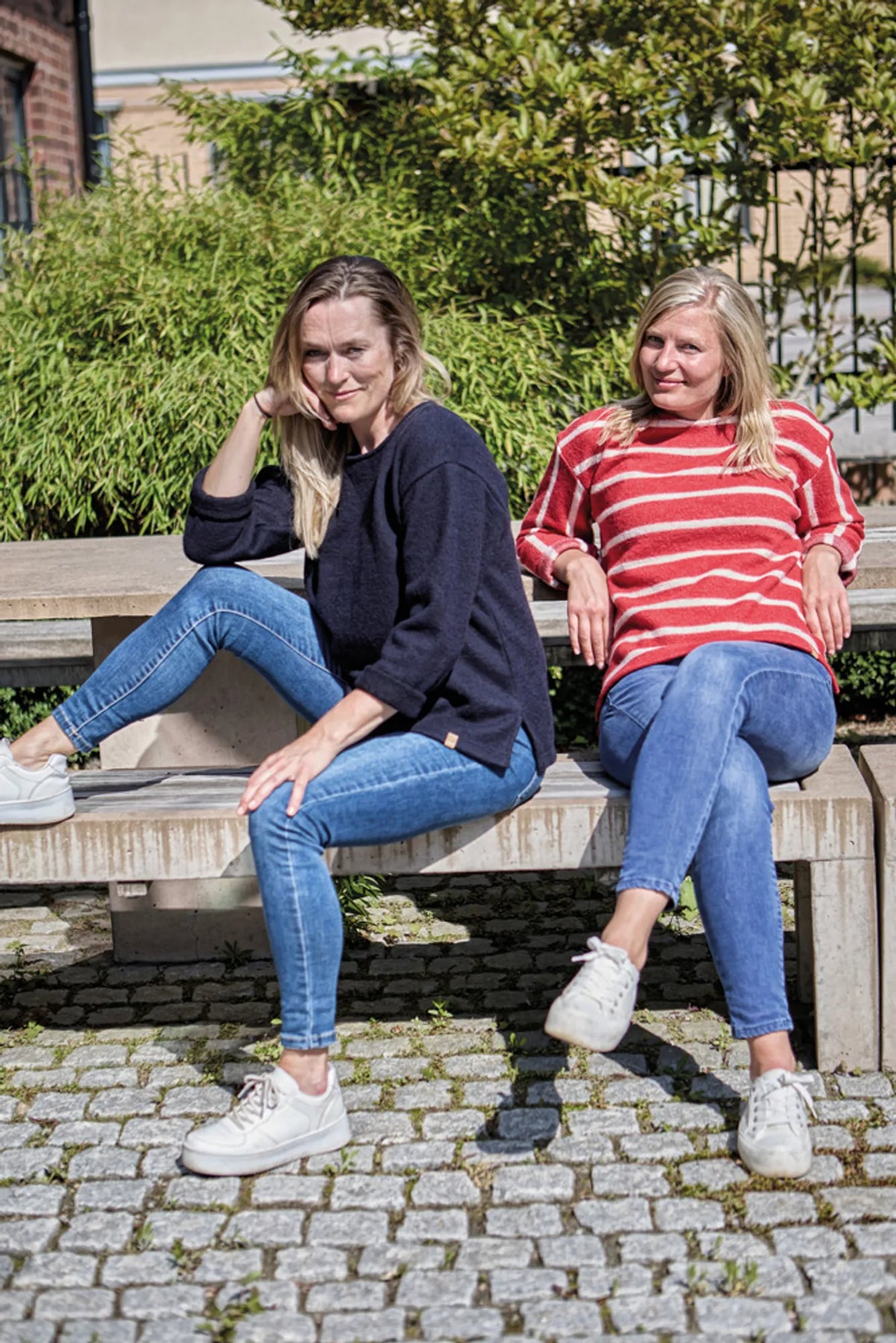 GY Bystad - A classic, striped sweater with fun details that will make it unique. Stripes are turned in different directions on body and arms. Speaking of arms, they are made alittle bit generous in width to make it easy to fold, which gives the relaxed and fashionable look that we prefer. Material is knitted in 60% wool and 40% Lyocell (TENCEL™), our boiled wool material that has become a very appreciated spring/summer material.