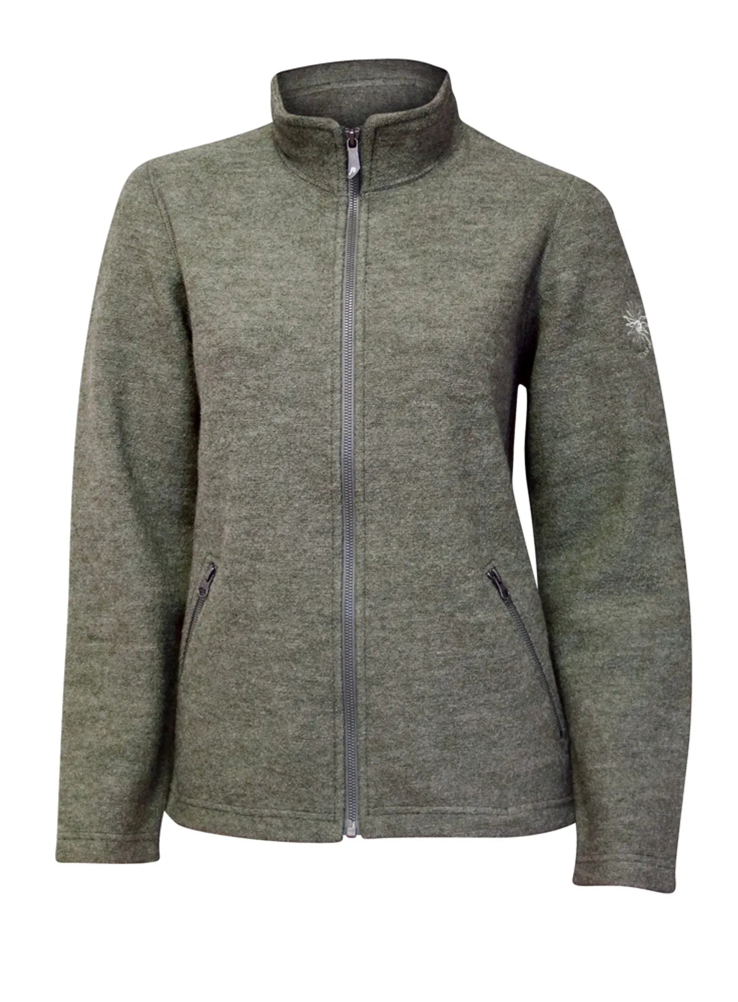 BELLA FULL ZIP, 60% BOILED WOOL, 40% LYCOCELL — LICHEN GREEN