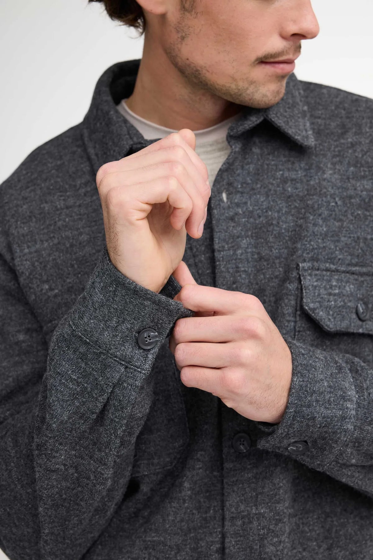 Stylish overshirt in 100% boiled merino wool, 350g.
