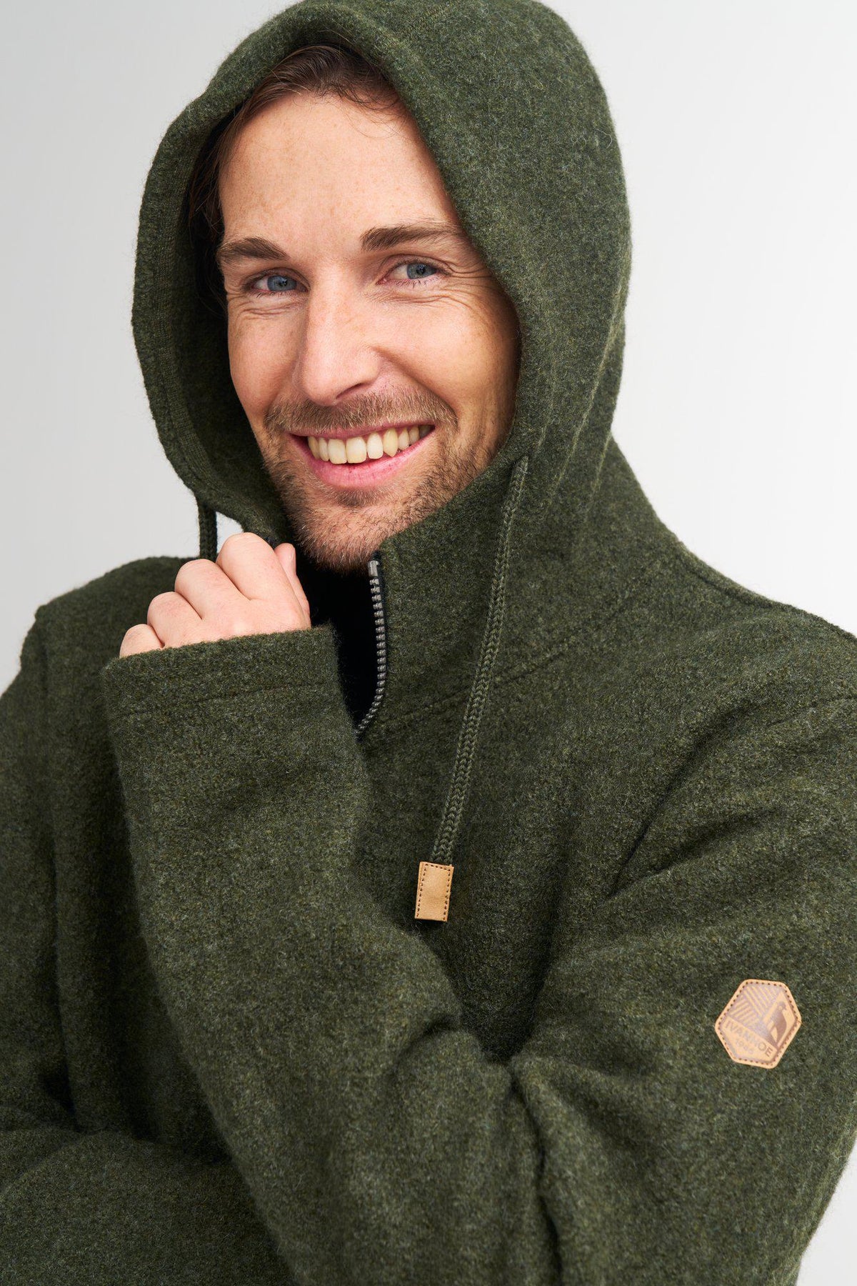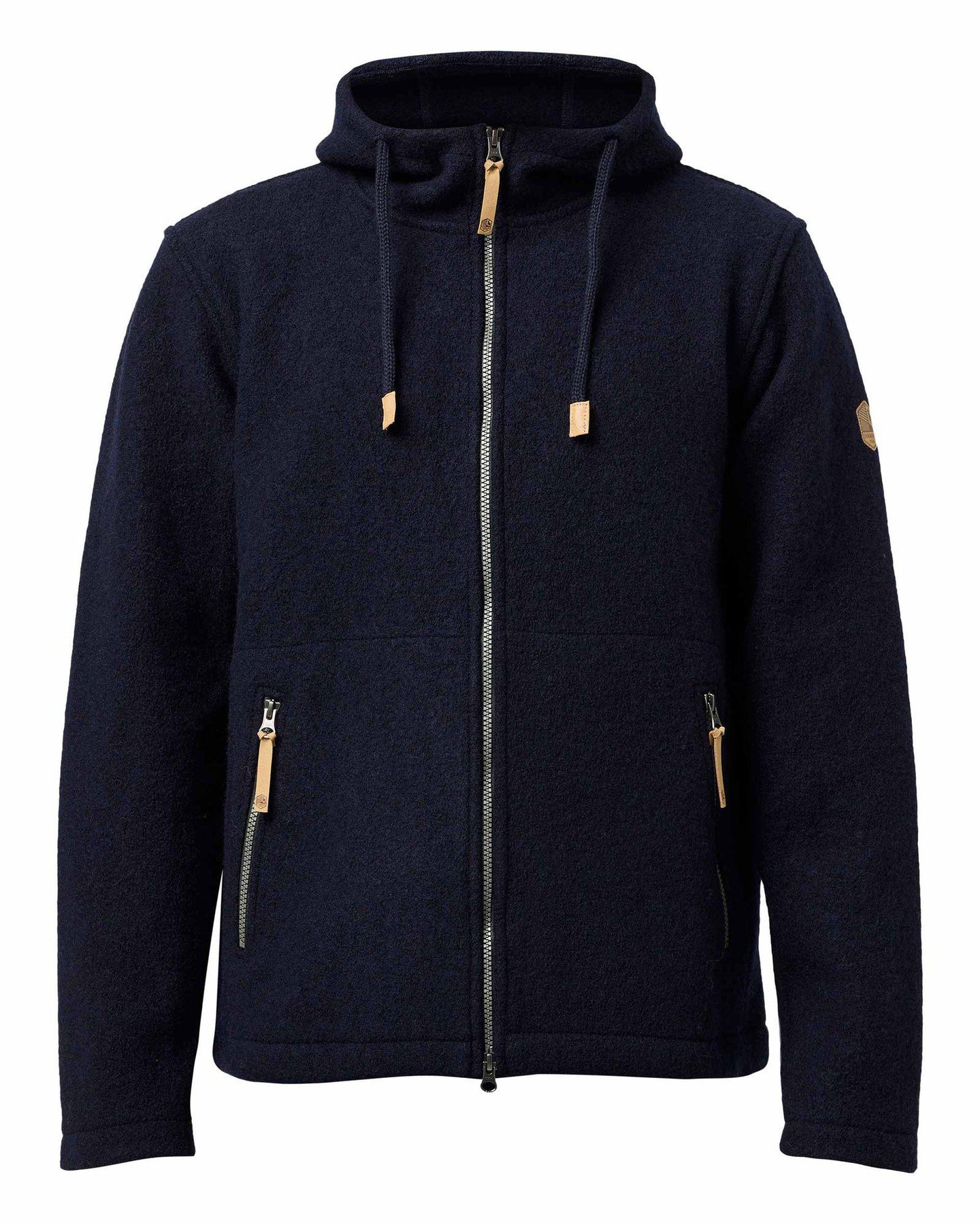 This hooded, heavy weight jacket in a 800g boiled wool quality will for sure keep you warm. It is knitted in 100% wool, where wool is mulesingfree and yarn is Bluesign® certified. The jacket has zipped side pockets, drawstring at bottom and logo badge on upper left arm in jacron. Jacket is also equipped with extra inner pocket.