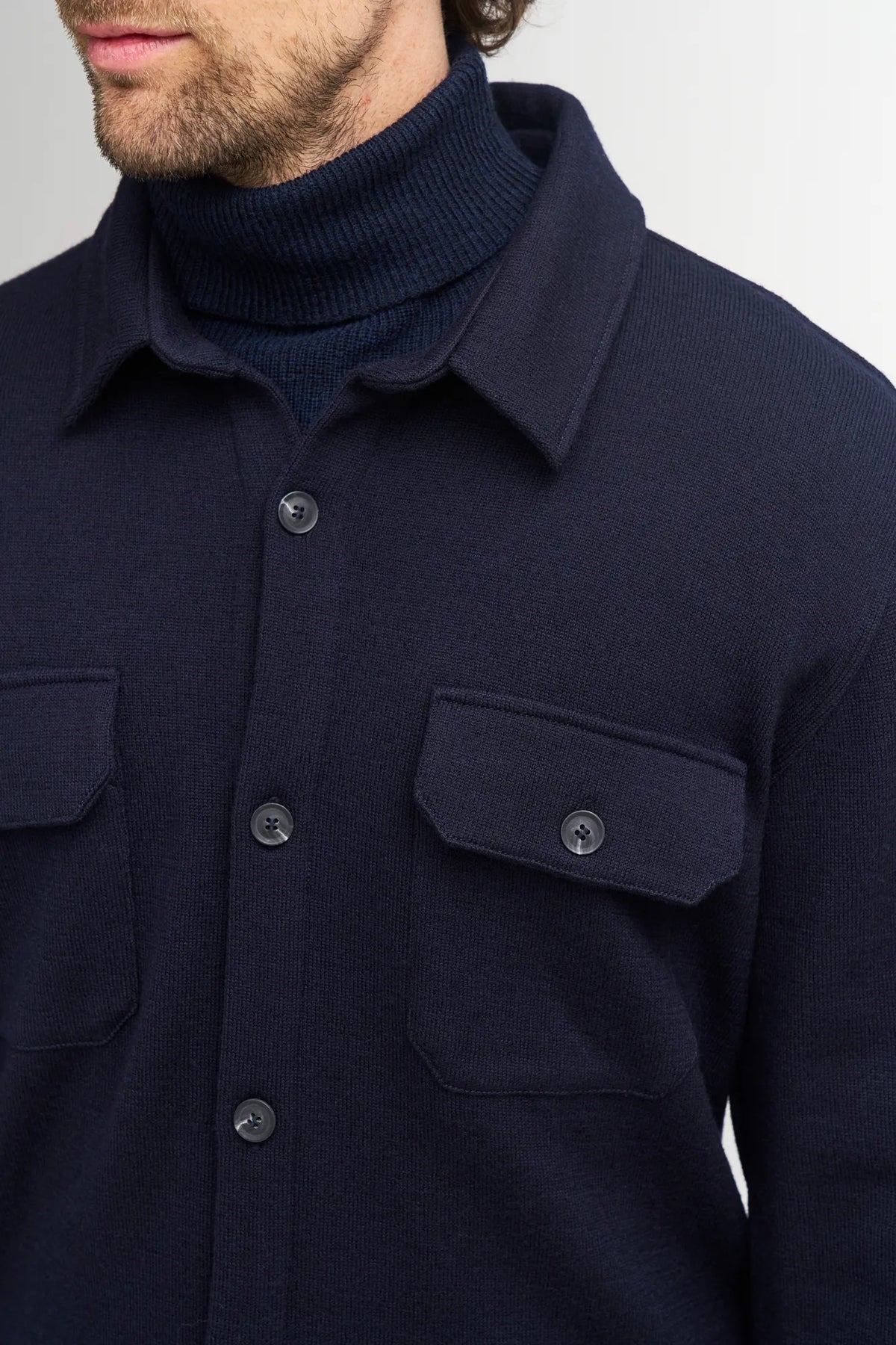 Stylish overshirt in 100% boiled merino wool, 350g.