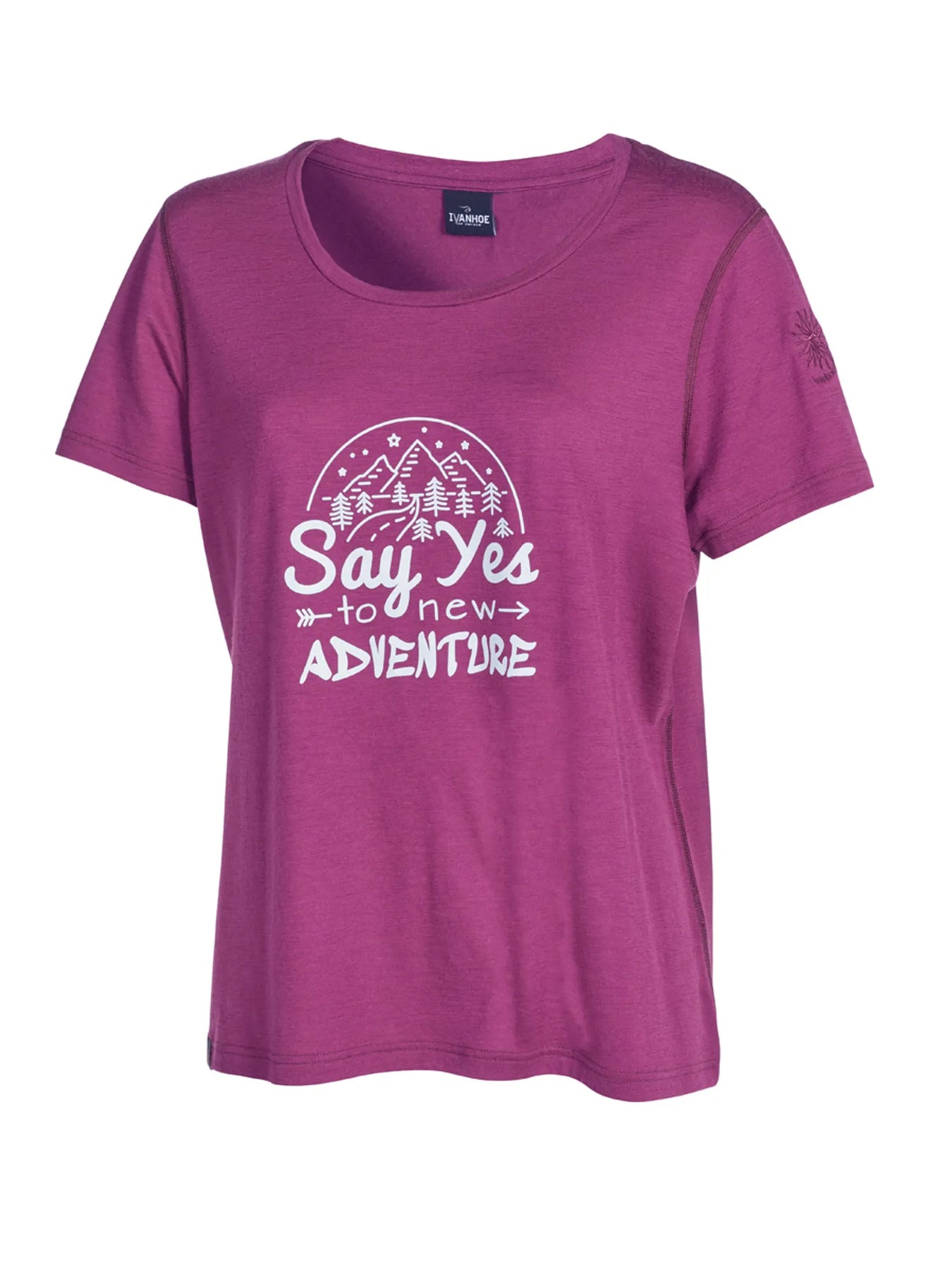 A you ready for new adventures? This T-shirt has an expressive print placed center front. A micron count of 18,5. Available in 5 different colours, all with same colour of print.