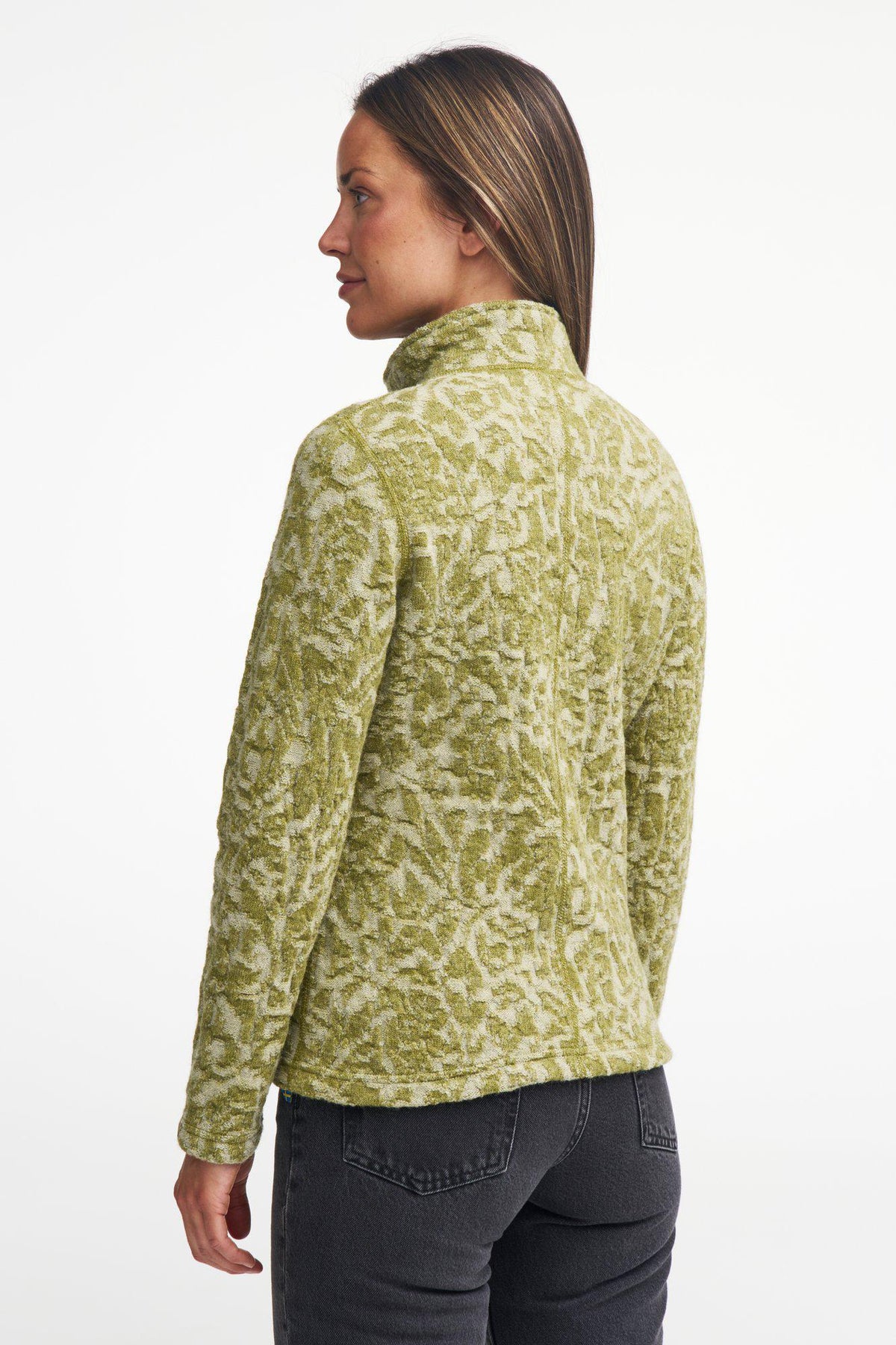 Beautiful jaquard knitting in 100% wool. Two shades of yarn are combined in 4 beautiful variants. Full zip at front and zipped side pockets. Small jacron badge down at left arm.