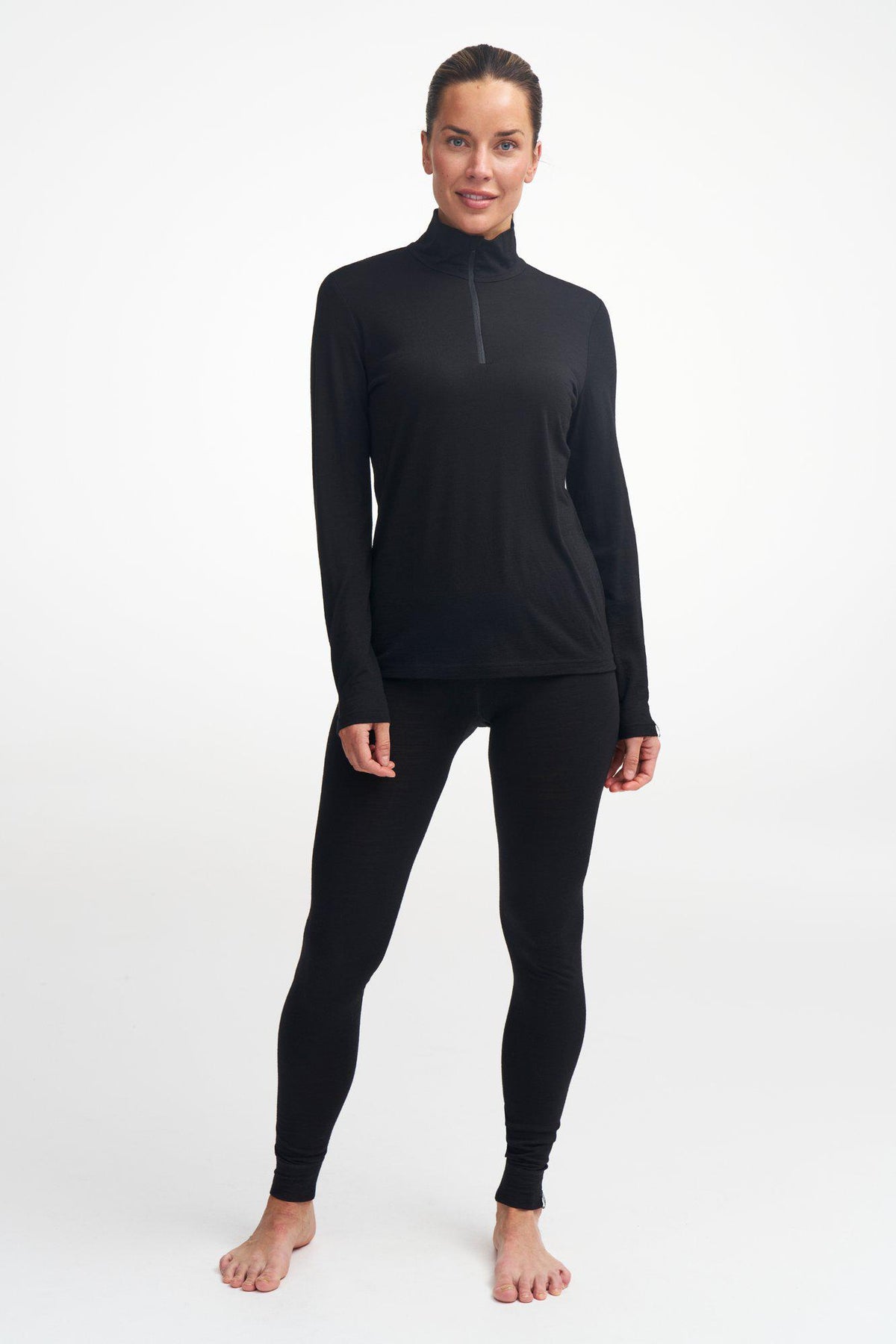 UNDERWOOL STELLA HALF ZIP, 100% MERINO WOOL EXTRAFINE — BLACK