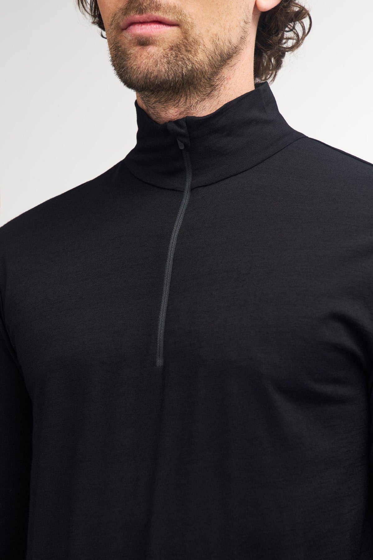 Long sleeve style in soft extrafine Merino wool, micron count 18,5. High functional in he slopes or on your hike or simply great casual wear. Short zip at front with zip garange for greater comfort. Logo badge down at left arm.