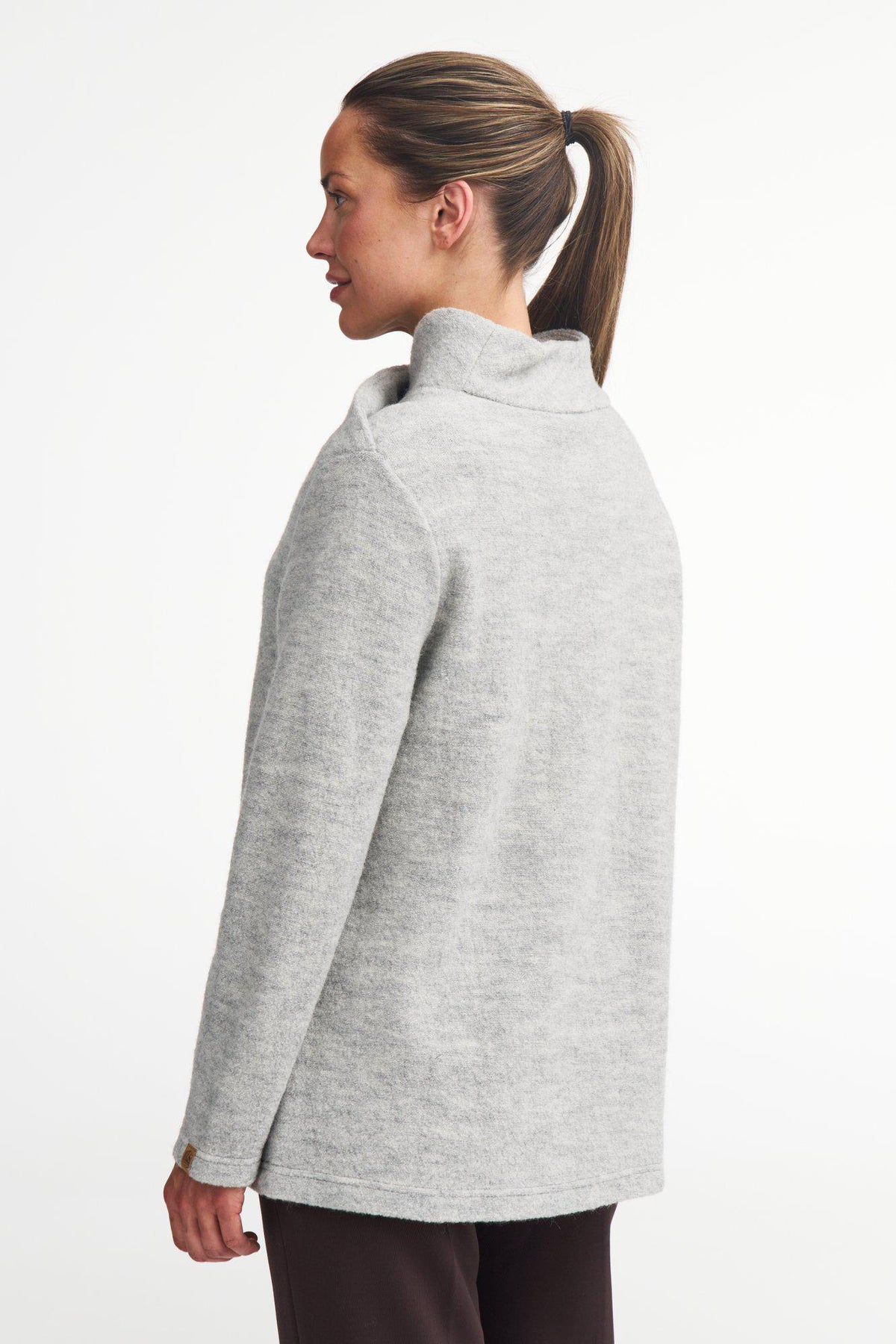 GY Elsabo är en fantastisk ulltröja i 100% filtad ull med generös passform och draperad omlottkrage som ger ett fint fall och som är omöjlig att inte älska. Plagget är utvecklat och stickat i vår egna fabrik i Gällstad. GY Elsabo ingår i våran GY-kollektion - ett gäng gamla klassiker som uppdaterats med nya material och ny teknik. Kollektionen erbjuder bekväma ullplagg passande för allt från jobb till fritidsaktiviteter. Ett väldigt användbart plagg och en stor återkommande favorit.