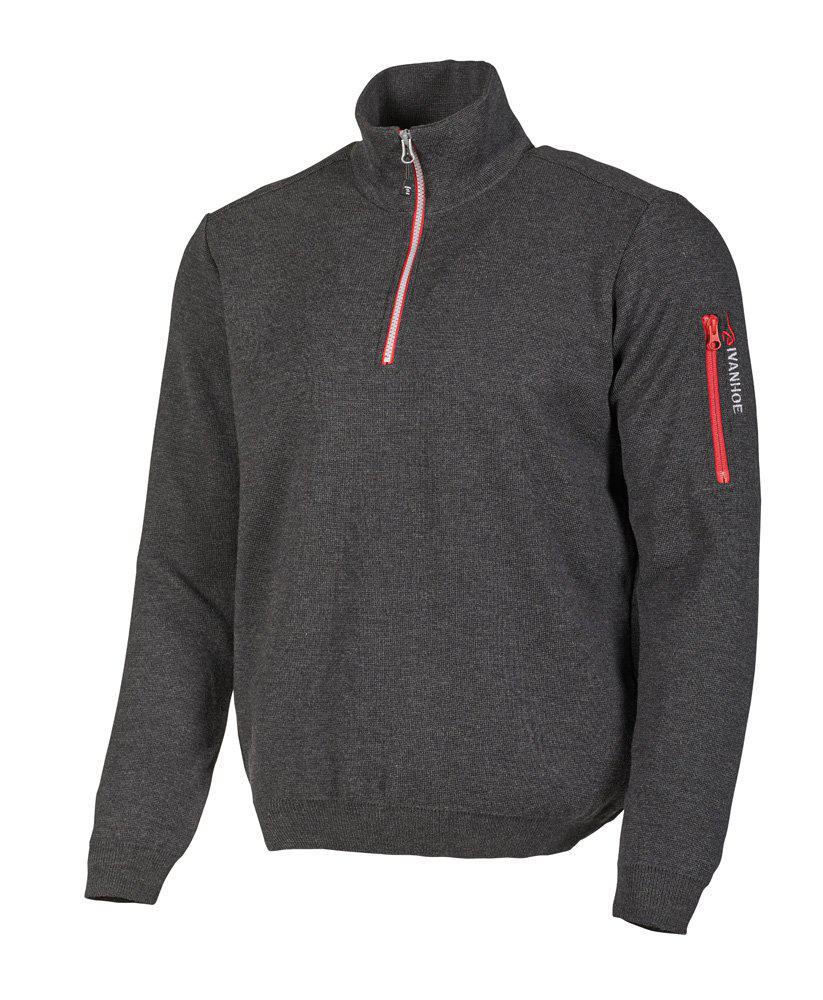 HADAR HALF ZIP, 100% EXTRA FINE MERINOULL — GRAPHITE MARL