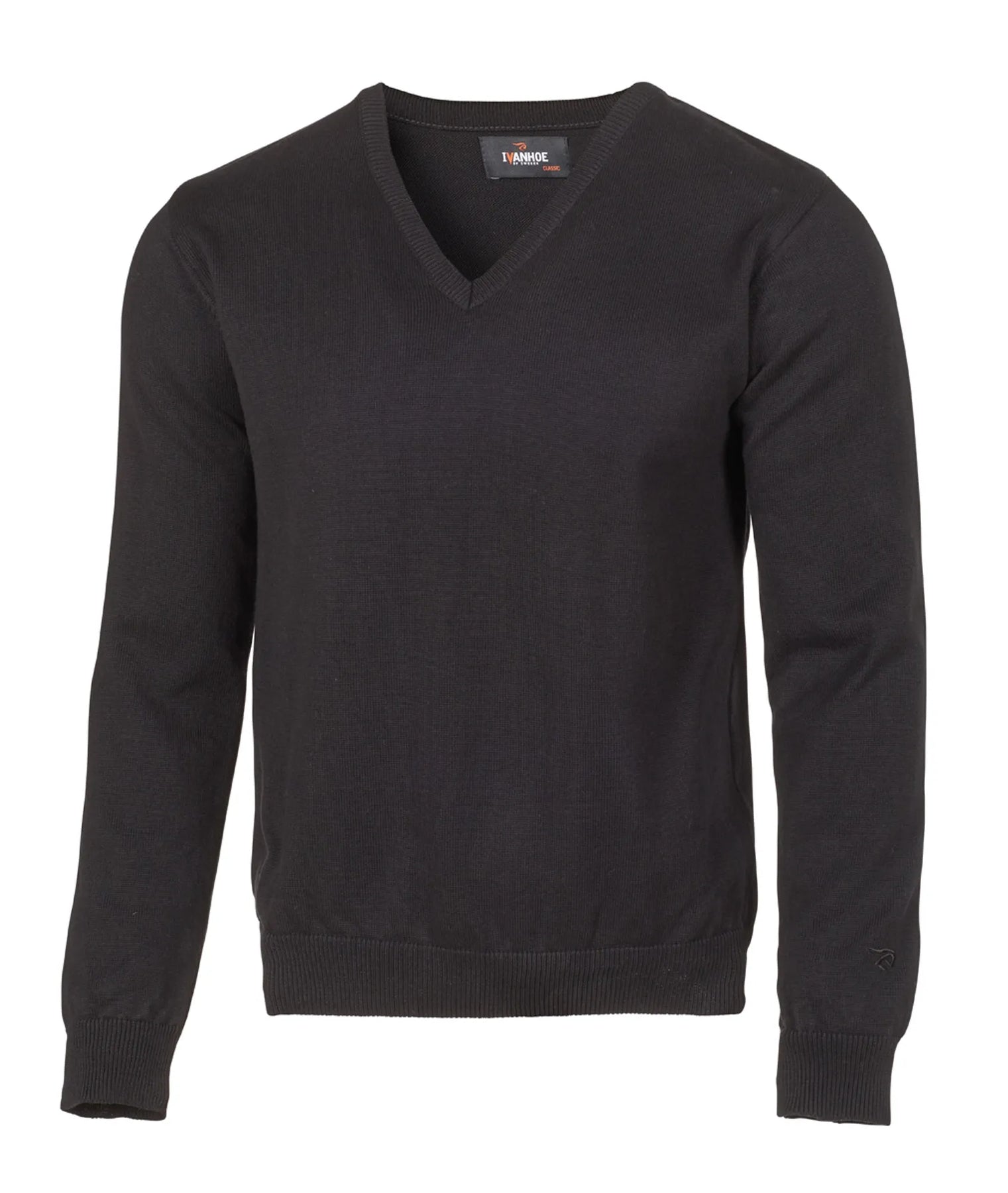 MERINO V-NECK MALE, 100% EXTRA FINE MERINOULL — BLACK