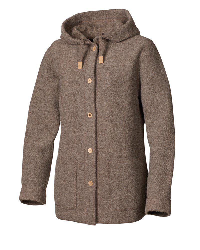 Den perfekta vårjackan kommer här! Smidig att slänga på sig och passar lika bra under skogspromenaden som på shoppingturen på stan. Stickad i 100% ull, där ullen är helt obehandlad och fri från kemikalier och färgämnen. Ulljackan har huva och generösa sidfickor. Knapparna framtill är gjorda av kokosnötskal, där varje knapp blir unik i färg och struktur. Logo badge i jacon upptill på vänster ärm.