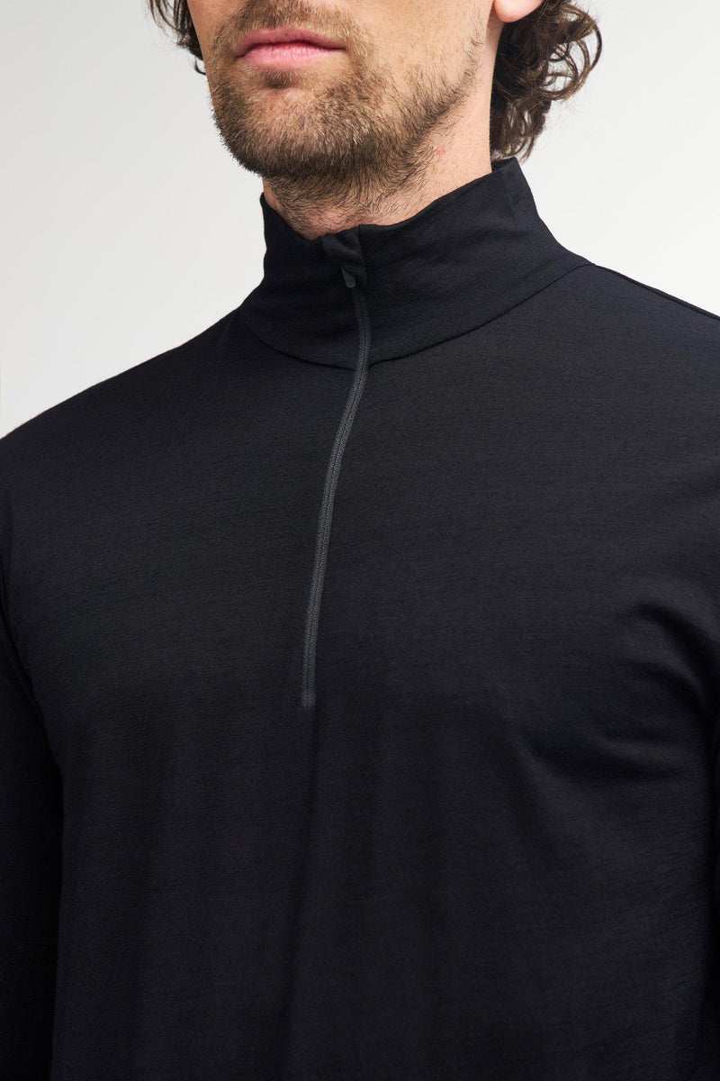 UNDERWOOL SONNY HALF ZIP, 100% EXTRA FINE MERINOULL — BLACK