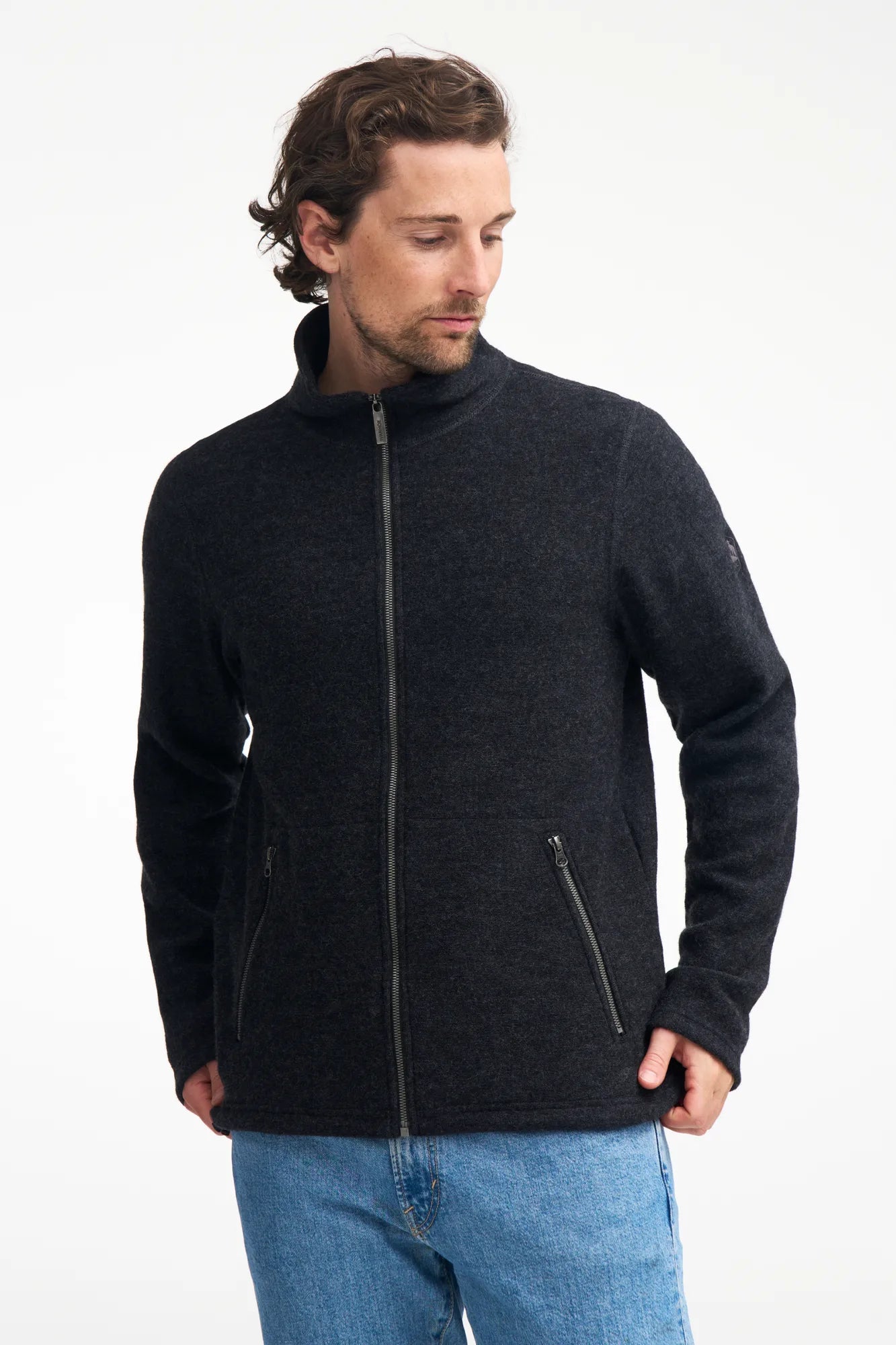 Bruno full zip - En herrtröja i vår filtade ullkvalitet i 60% ull och 40% TENCEL®. Det stickade materialet är pläterat och har TENCEL® närmast kroppen vilket ger en mjuk och sval känsla mot huden. Hel dragkedja och sidfickor, även dessa med dragkedja. En perfekt ulljacka för vår och sommar, eller som ett högfunktionellt lager 2 under skaljackan. En tröja som man kan ha till mycket helt enkelt.