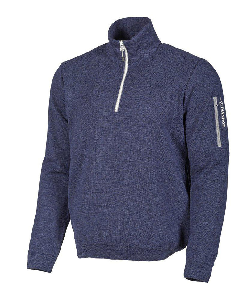 HADAR HALF ZIP, 100% EXTRA FINE MERINOULL — STEELBLUE